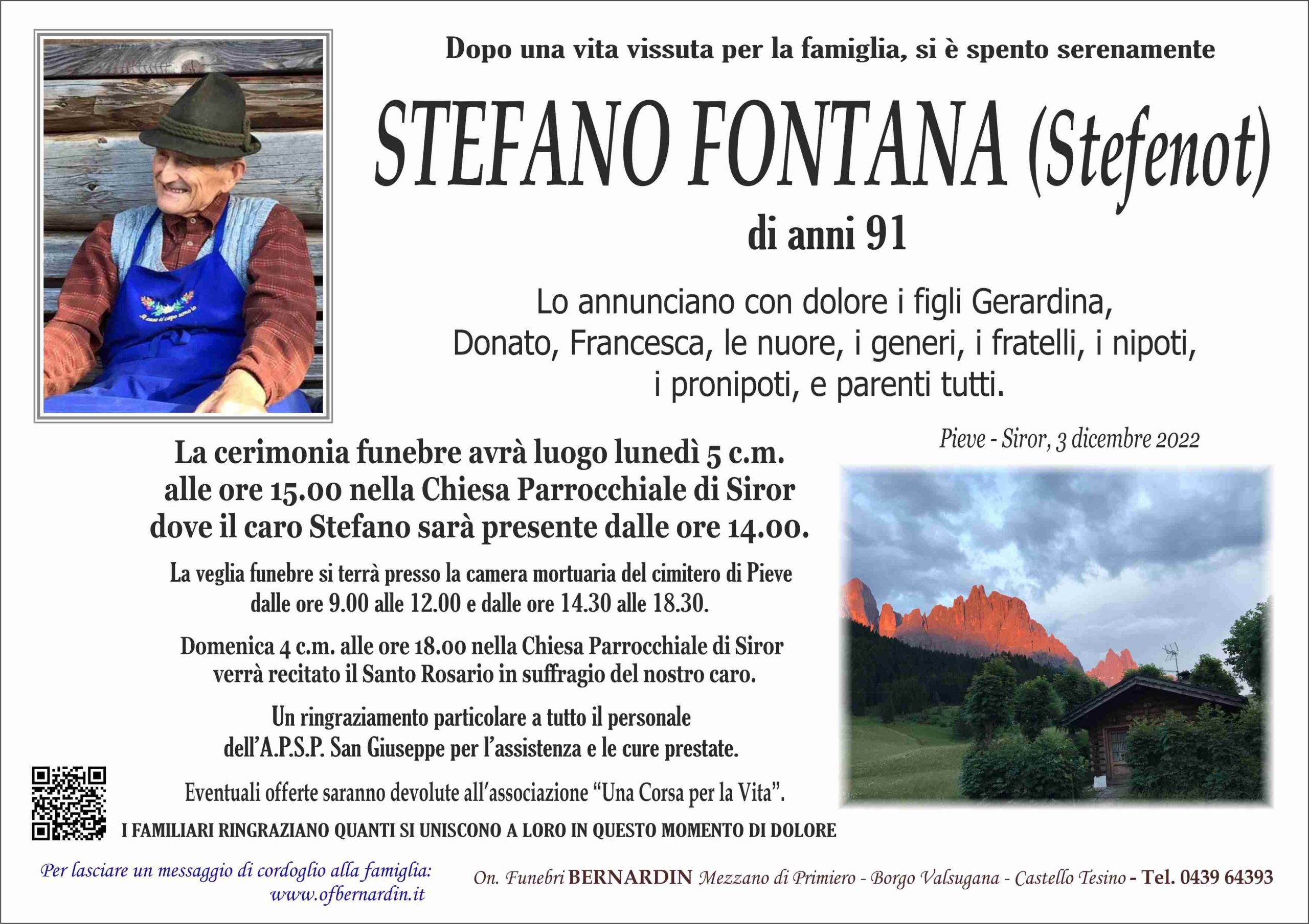 La cerimonia funebre avrà luogo lunedì 5 c.m. alle ore 15.00 nella Chiesa Parrocchiale di Siror dove il caro Stefano sarà presente dalle ore 14.00.